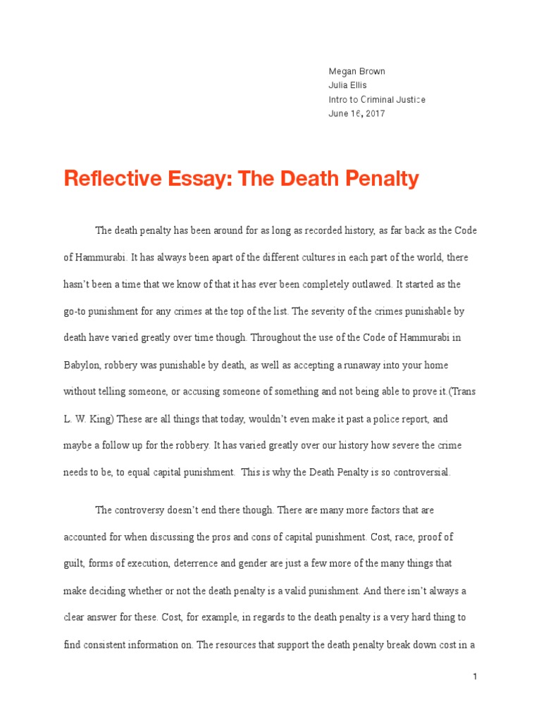 The death penalty essay. The death penalty is such a controversial topic there will never be a correct answer. Death penalty was introduced with the sole purpose of deterring people from committing violent crimes. First of all it helps the criminal to remorse and become a good citizen.